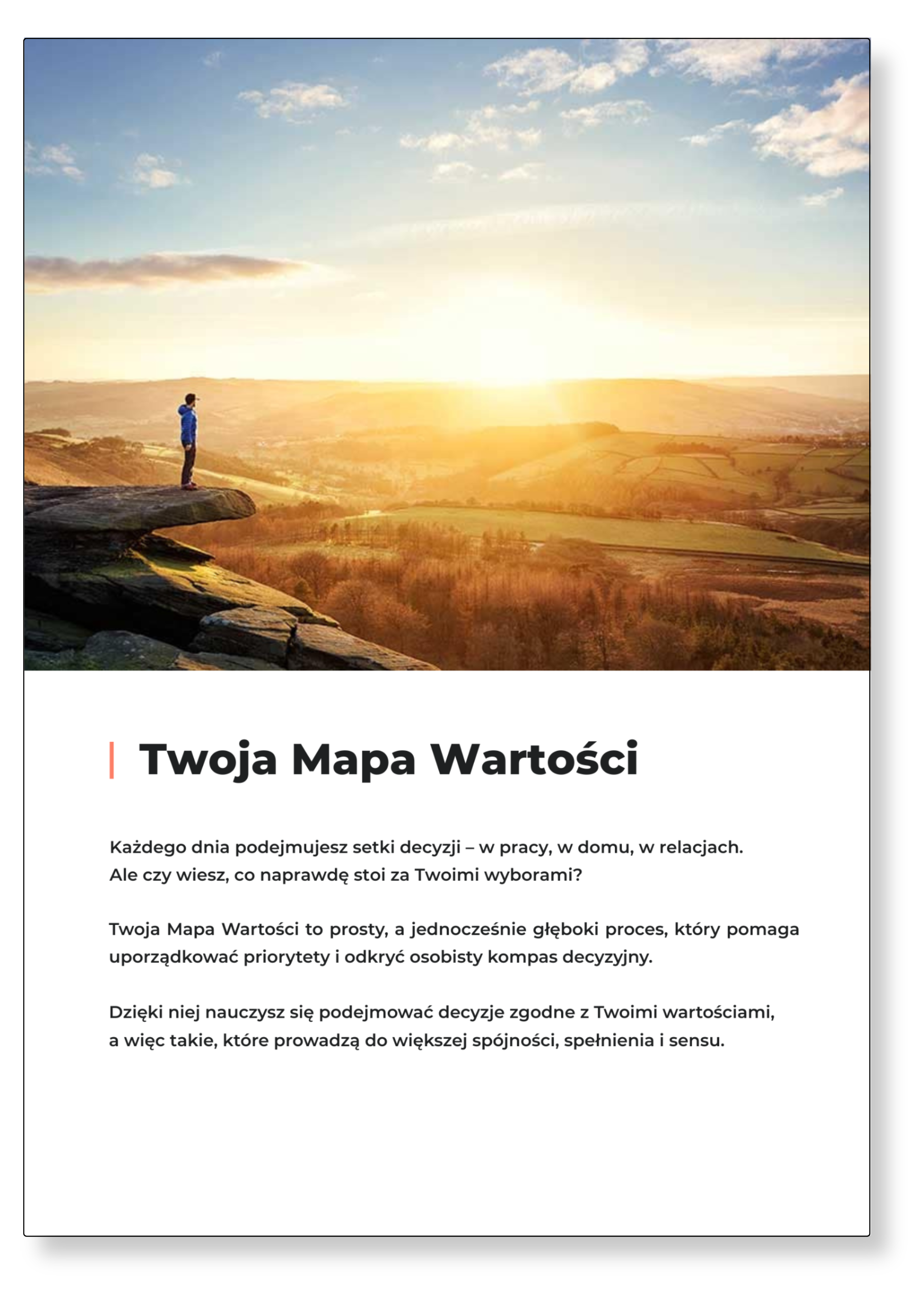 Pobierz darmowy rozdział Twojej Mapy Wartości i zacznij odkrywać, co naprawdę jest dla Ciebie ważne.